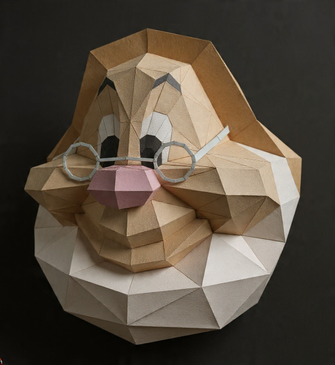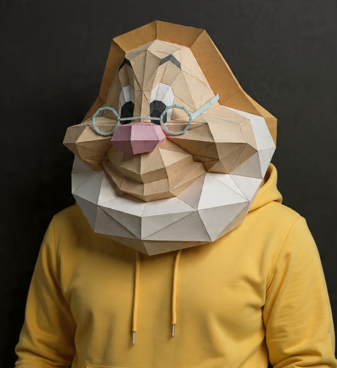 Máscaras geométricas de diferentes modelos (animales, cultura pop, cine, etc.)