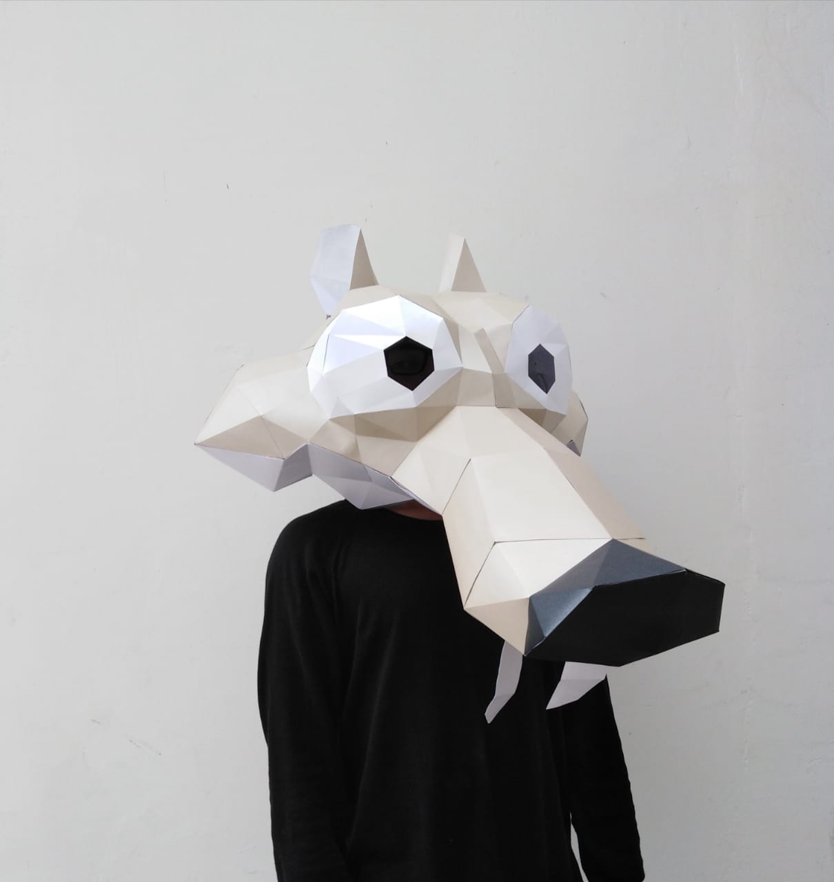 Máscaras geométricas de diferentes modelos (animales, cultura pop, cine, etc.)