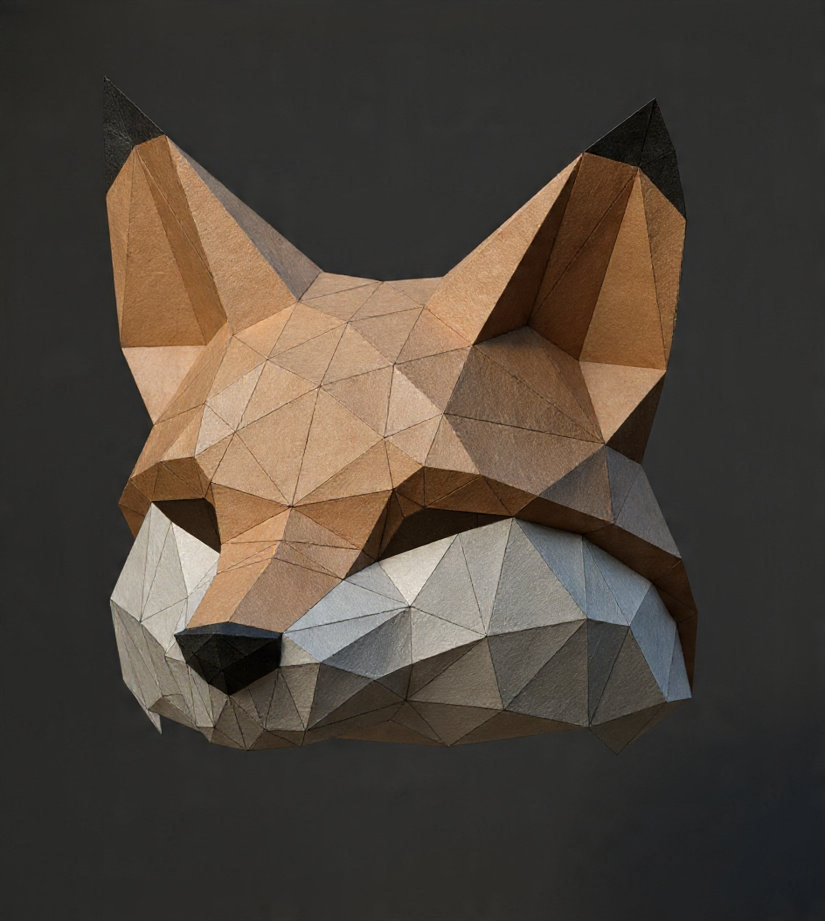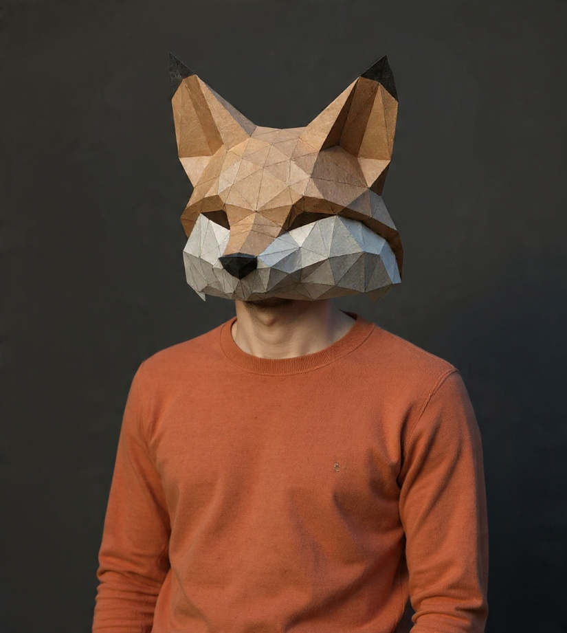 Máscaras geométricas de diferentes modelos (animales, cultura pop, cine, etc.)